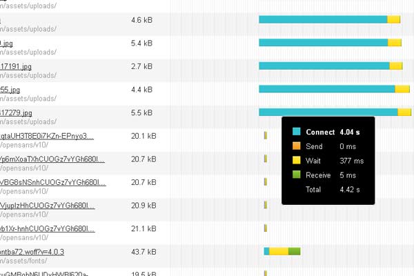 Browser is making 81 requests, it spending more than 77% of the time connecting to the server. Which strike me that the server may be very slow? Digging a bit deeper it can be seen it takes 4.04 second to connect to host. I can definitely eliminate this 4 second with a fast Linux server.